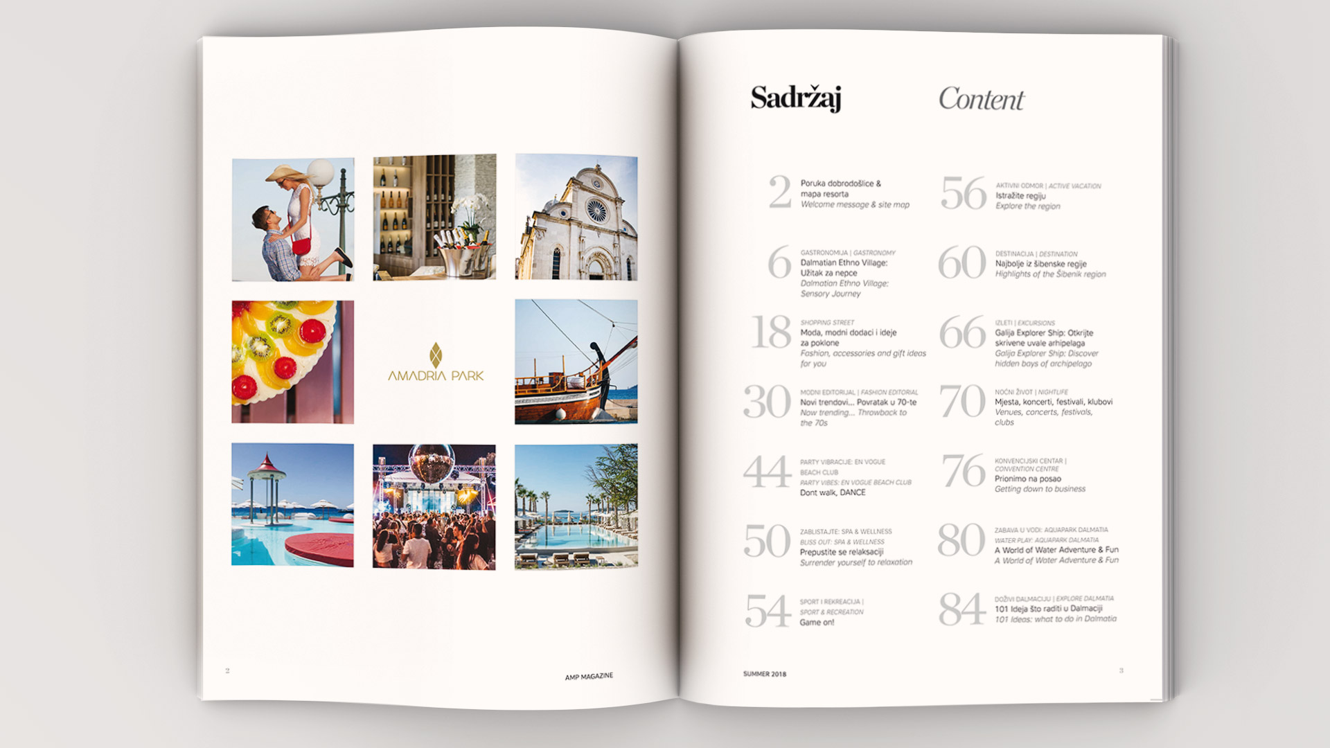 Cjelokupna produkcija ekskluzivnog lifestyle časopisa AMP MAG na 100 stranica, čiji sadržaj predstavlja ponudu Amadria Park resorta (idejno grafičko rješenje, koncept sadržaja, fotografiranje, copywriting, prijevodi tekstova, prijelom stranica, obrada kolora, priprema i kontrola tiska).