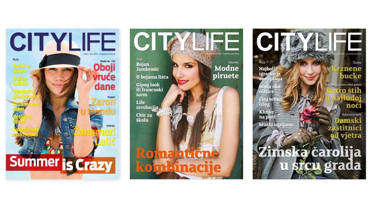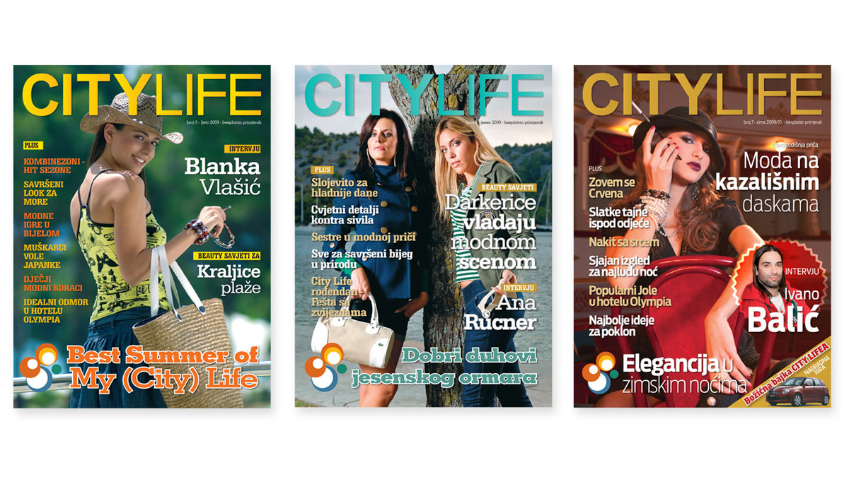 Grafičko oblikovanje i priprema za tisak lifestyle časopisa shopping centra City Life.